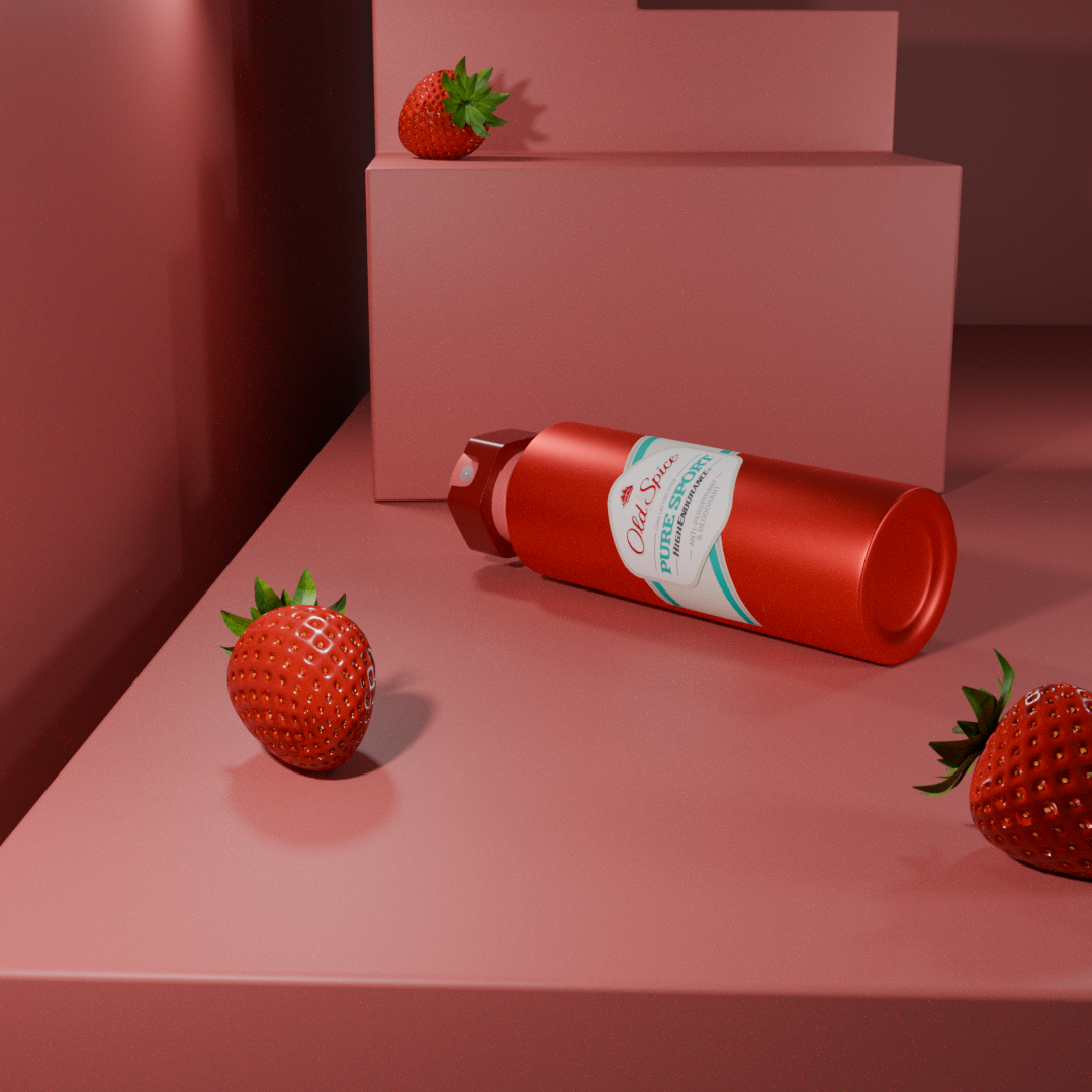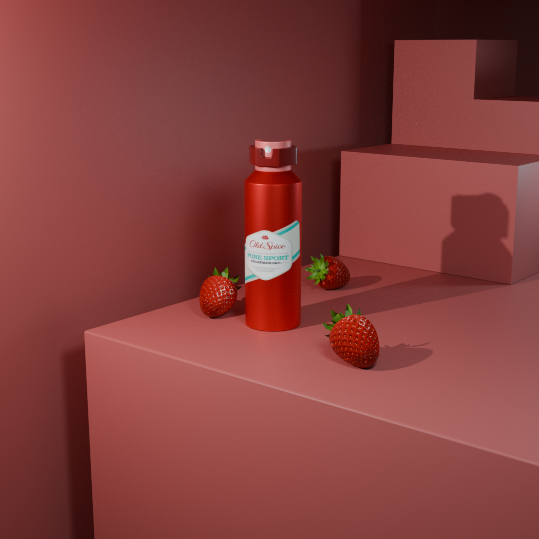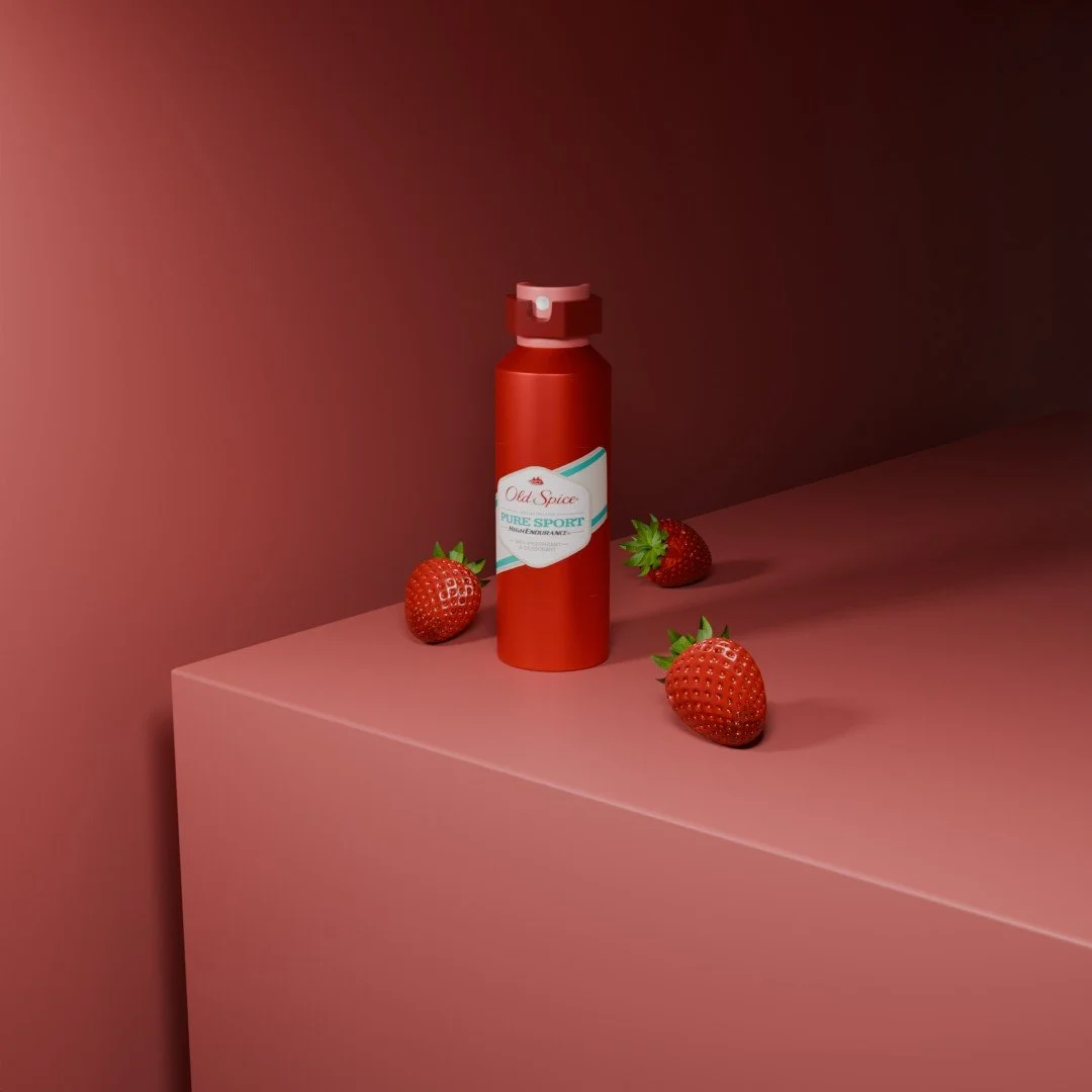 A fully CGI brand campaign for Old Spice Pure Sport, created entirely in Blender. The project features multiple styled render angles with geometric set design, warm studio lighting, and intentional prop placement to build a cohesive editorial aesthetic around the product.