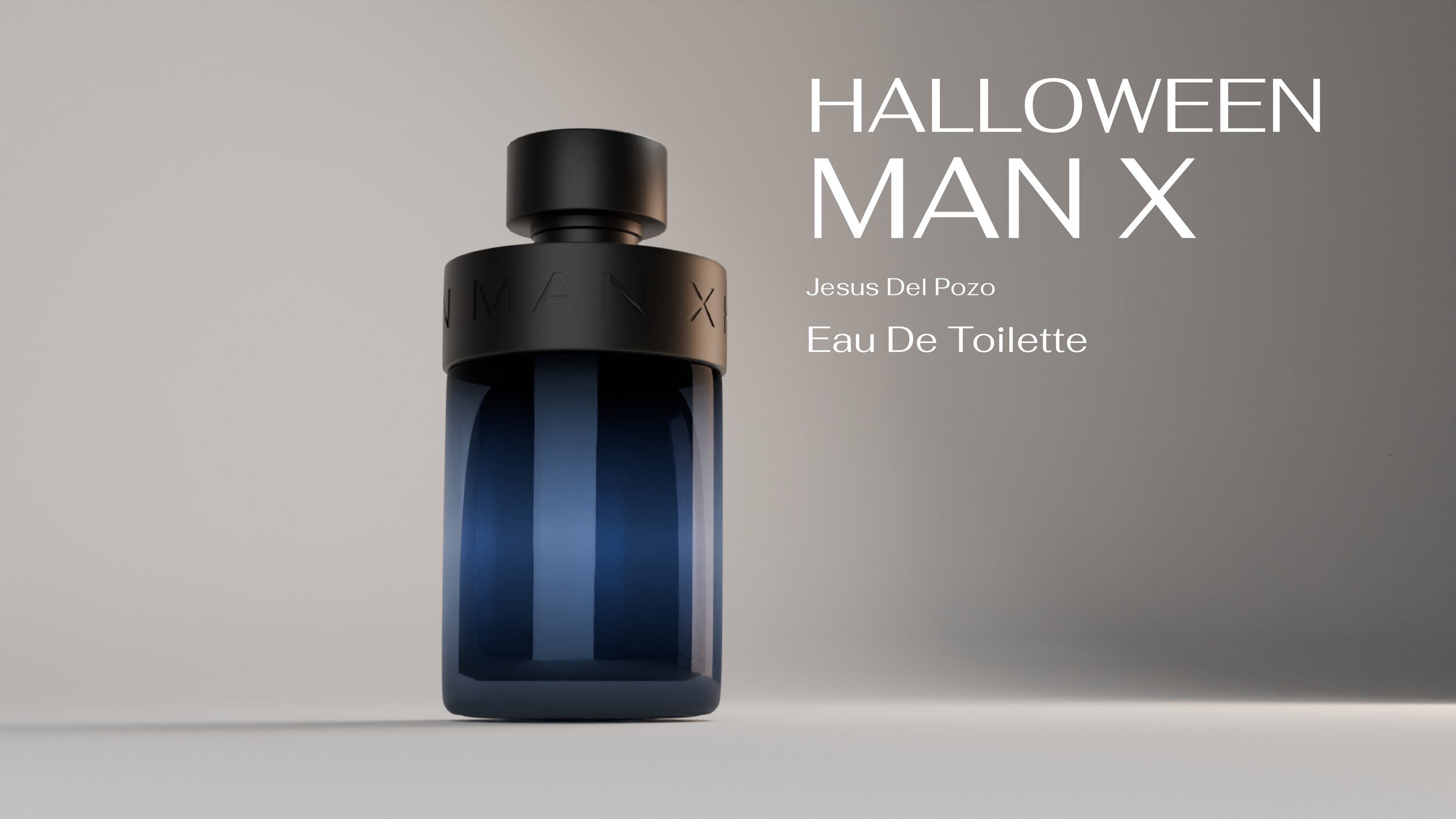 A cinematic product animation for Halloween Man X Eau de Toilette by Jesus Del Pozo. The bottle was modeled and textured in Blender with attention to its deep blue glass and matte black cap, then paired with a dramatic fluid simulation to create a high-end commercial aesthetic.